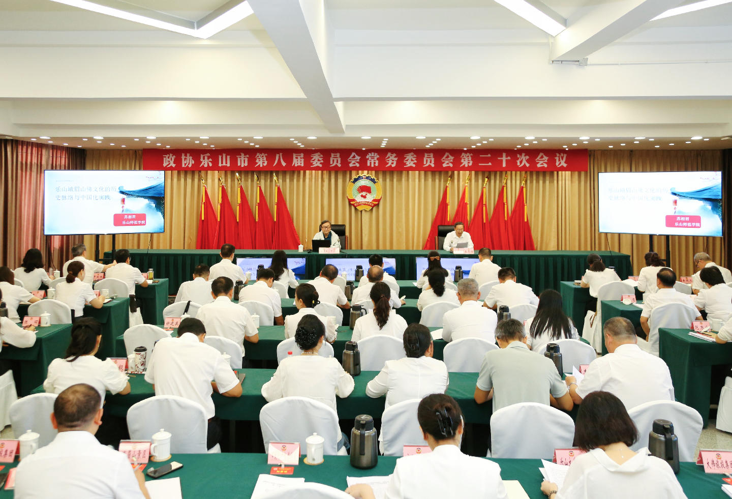 9月25日,政协乐山市第八届委员会常务委员会第二十次会议召开,围绕“推进佛文化与旅游深度融合,加快打造世界重要旅游目的地”协商议政。市政协主席黄平林出席会议并讲话。市委常委、统战部部长席代金,市人大常委会副主任金雪冰应邀出席会议。市政府副市长许天毅到会通报有关工作情况。