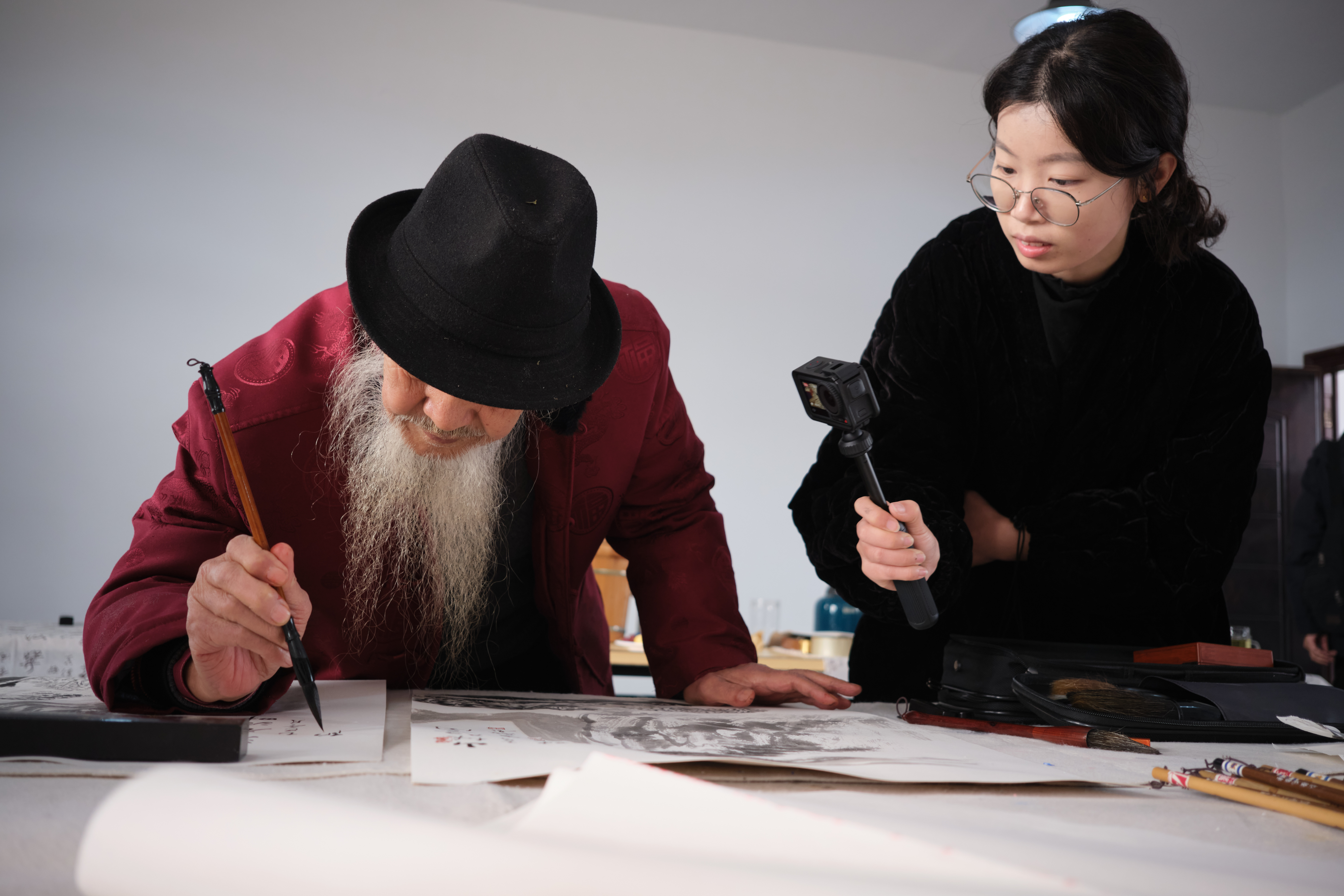 上午,市政协书画研究院院士们聚焦夹江“水韵千年、佛光千年”的独特文脉,现场开展“传统技艺的现代转化”沉浸式采风。下午,乐山市政协书画研究院院士与夹江县政协书画院代表围绕主题举行交流笔会,即兴创作的作品或气势磅礴、或意境空灵,既传承传统笔墨神韵,又融入现代审美思考,彰显政协书画队伍“守正创新”的艺术自觉,拓宽文化传承新思路。