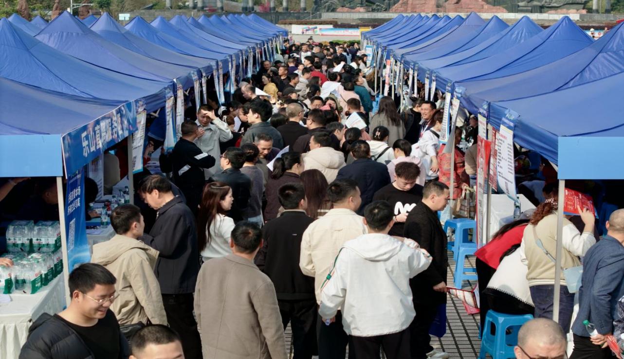 为全面落实稳就业、促发展相关决策部署,切实搭建用人单位与求职者高效对接平台,助力各类群体实现高质量充分就业,3月11日,由中共乐山市委统战部、乐山市人力资源和社会保障局、乐山市工商业联合会指导,乐山市总商会联合乐山市新的社会阶层人士联谊会、乐山市网络代表人士联谊会主办的“春风送岗 在‘嘉’就业”2026年乐山市知名企业大型招聘会,在乐山广场举行。