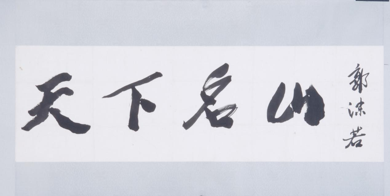 不到一个月,收到了郭沫若的回信,信里夹着折叠成条的宣纸,打开一看,正是郭沫若手书的“天下名山”四字,那字迹在玉版宣上跃然欲出,墨色苍润,灼灼闪光。